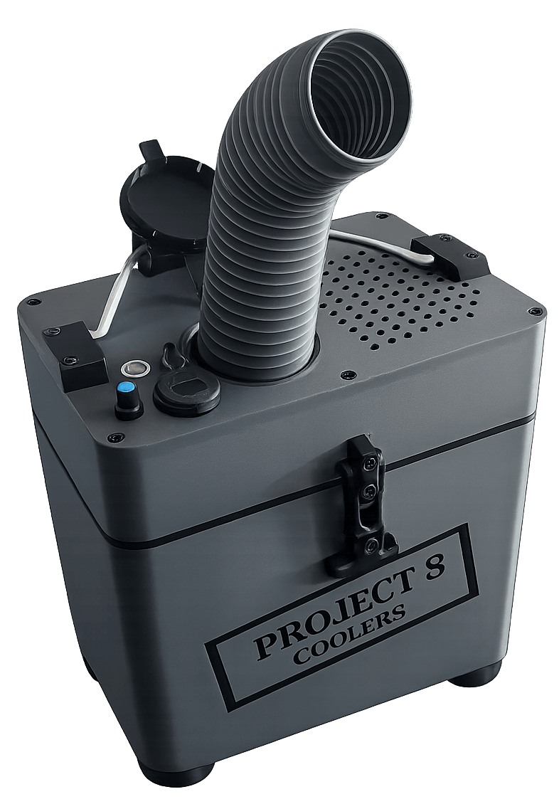 Project 8 Coolers are available in multiple color options to match your setup, your gear, and your personal style. Whether you prefer a bold look or something more understated, each unit delivers the same powerful, reliable cooling performance—built for the course, the outdoors, and everywhere in between.